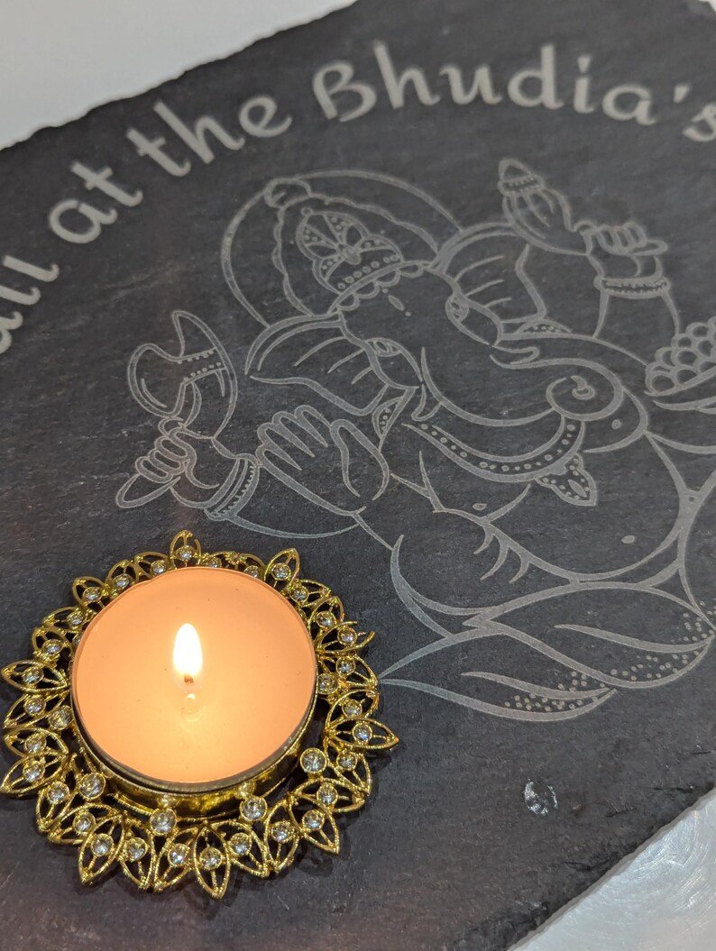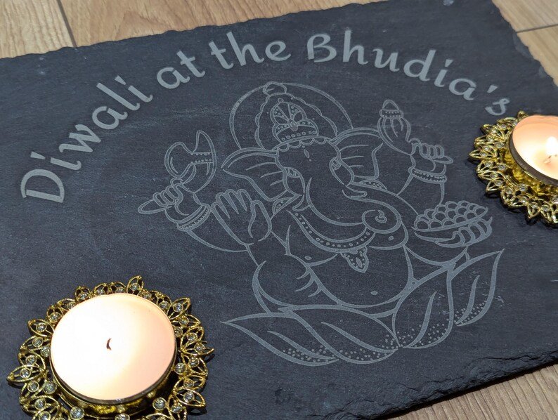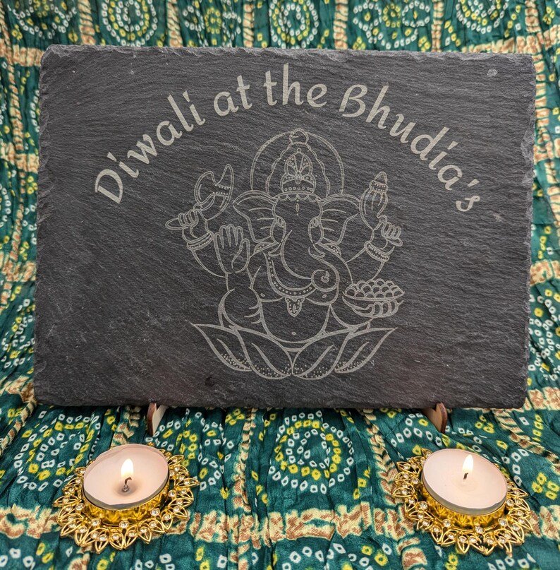- Personalisation Instructions: Please enter your family name in the personalisation box, and we will engrave “Diwali at the [Your Family Name]’s” on the slate.