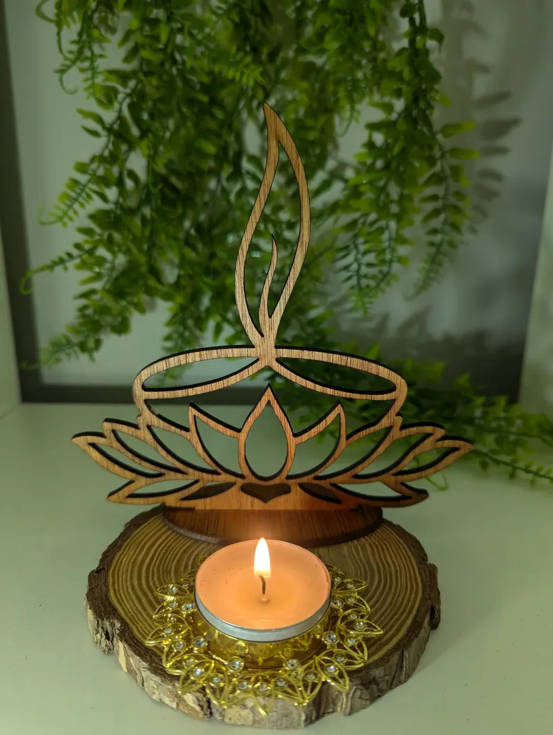 - Includes: 1 x Wooden Stencil (rangoli powder/paint not included) or used as a candle stand. 2-in-1 design.
